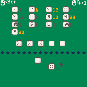 Made for the 2025 pico1k Jam as a attempt to make and submit somethin once a week for the month. There is a bug where you cannot score more than 1 Yahtzee. a limitation to the size and the scoring loop. I may give a longer look at it in the future to fix this.