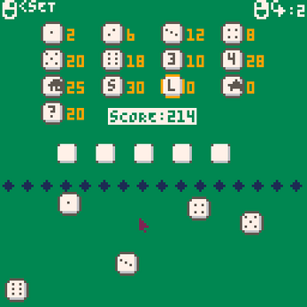 This was a submission tot eh pico1k jam. A lot of Yahtzee's have been made, with this the challenge was size and the focus on mouse controls instead of keyboard.